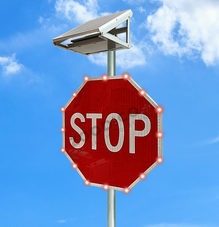 MUTCD-compliant solar powered LED flashing STOP signs for traffic safety.”